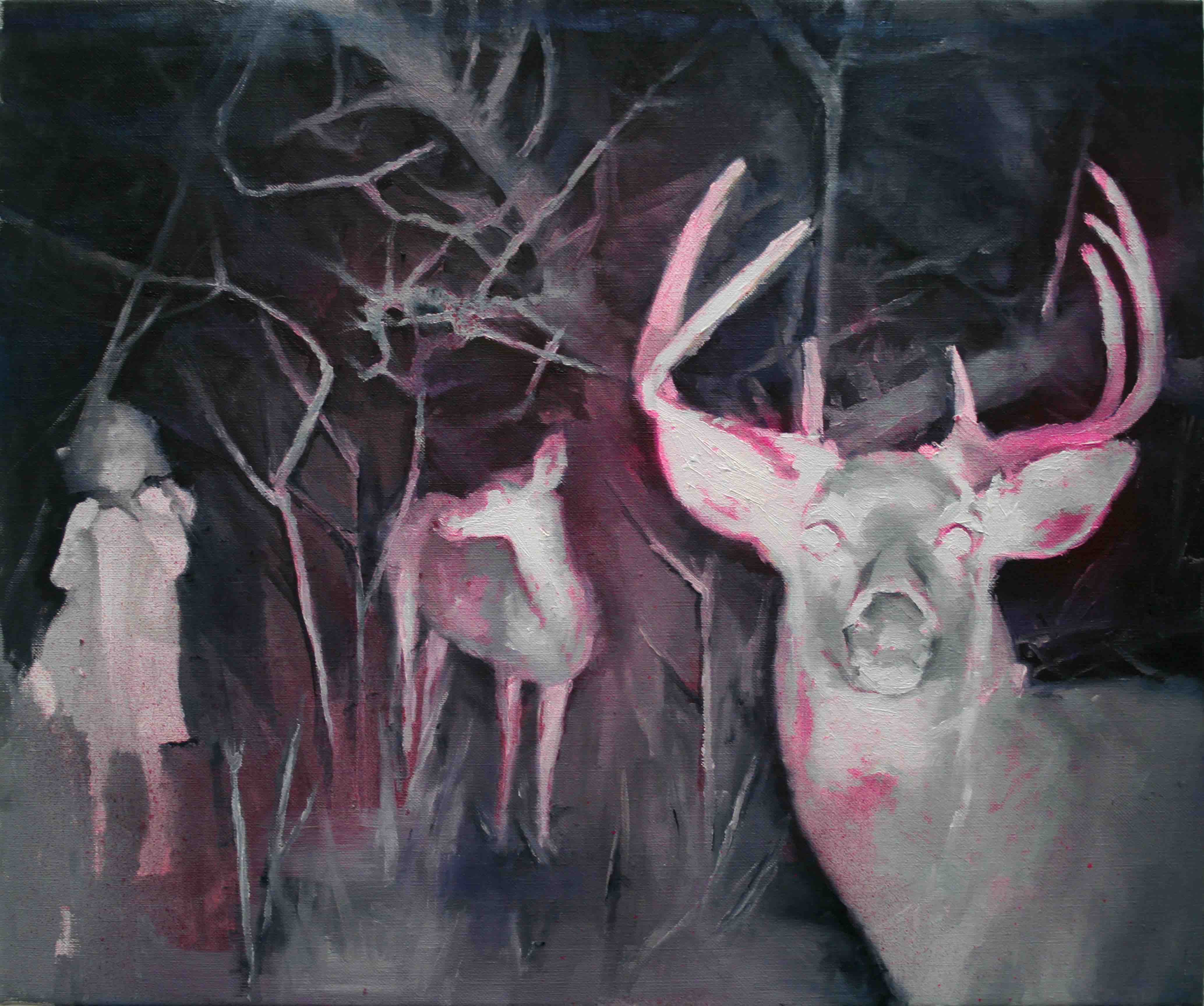 Mis trabajos no buscan una narrativa explícita, sino la construcción de un lenguaje figurativo propio donde intento que la obra tenga importancia como obra individual más allá de los aspectos narrativos que pueda tener. Busco relaciones que vayan entre la evidencia y la interpretación, entre la figuración y abstracción, entre el blanco y negro y el color. Utilizando diferentes materiales en una misma obra, como acrílico, óleo, spray o esmalte. Que el dinamismo pictórico sirva y exceda el tema representado es un concepto fundamental en el desarrollo de mis obras.
